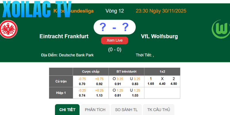 Bảng tỷ lệ kèo trận Eintracht Frankfurt – Wolfsburg